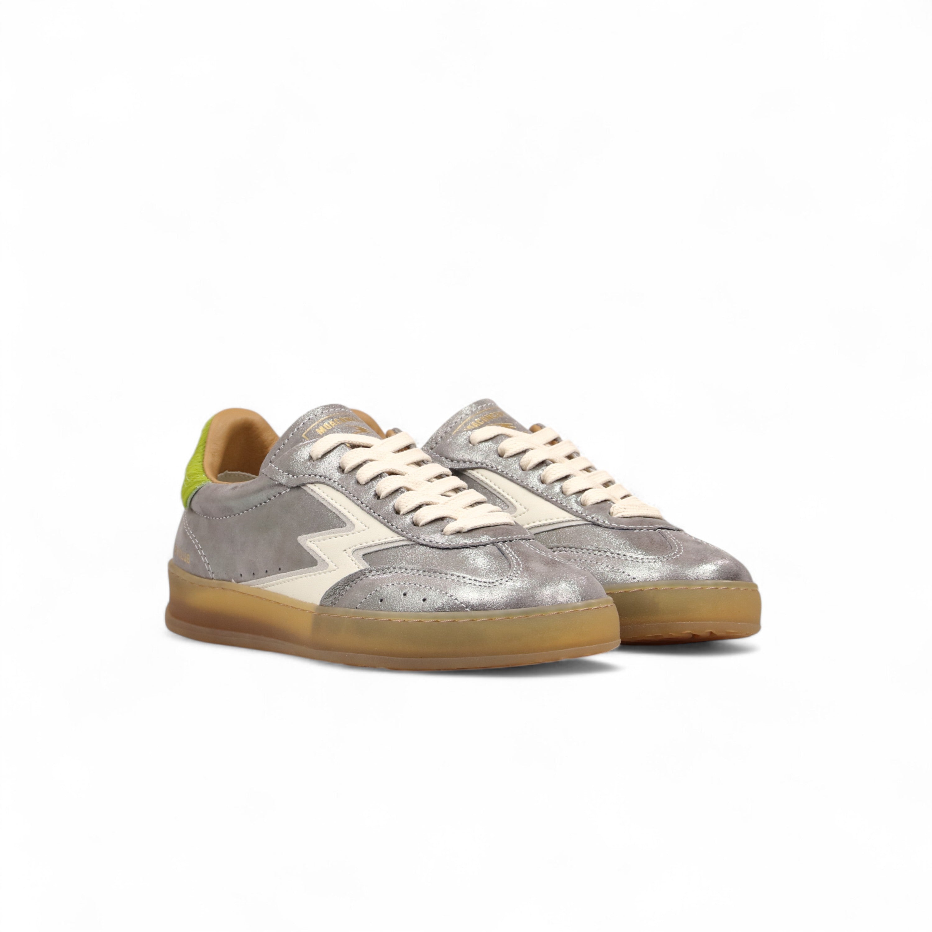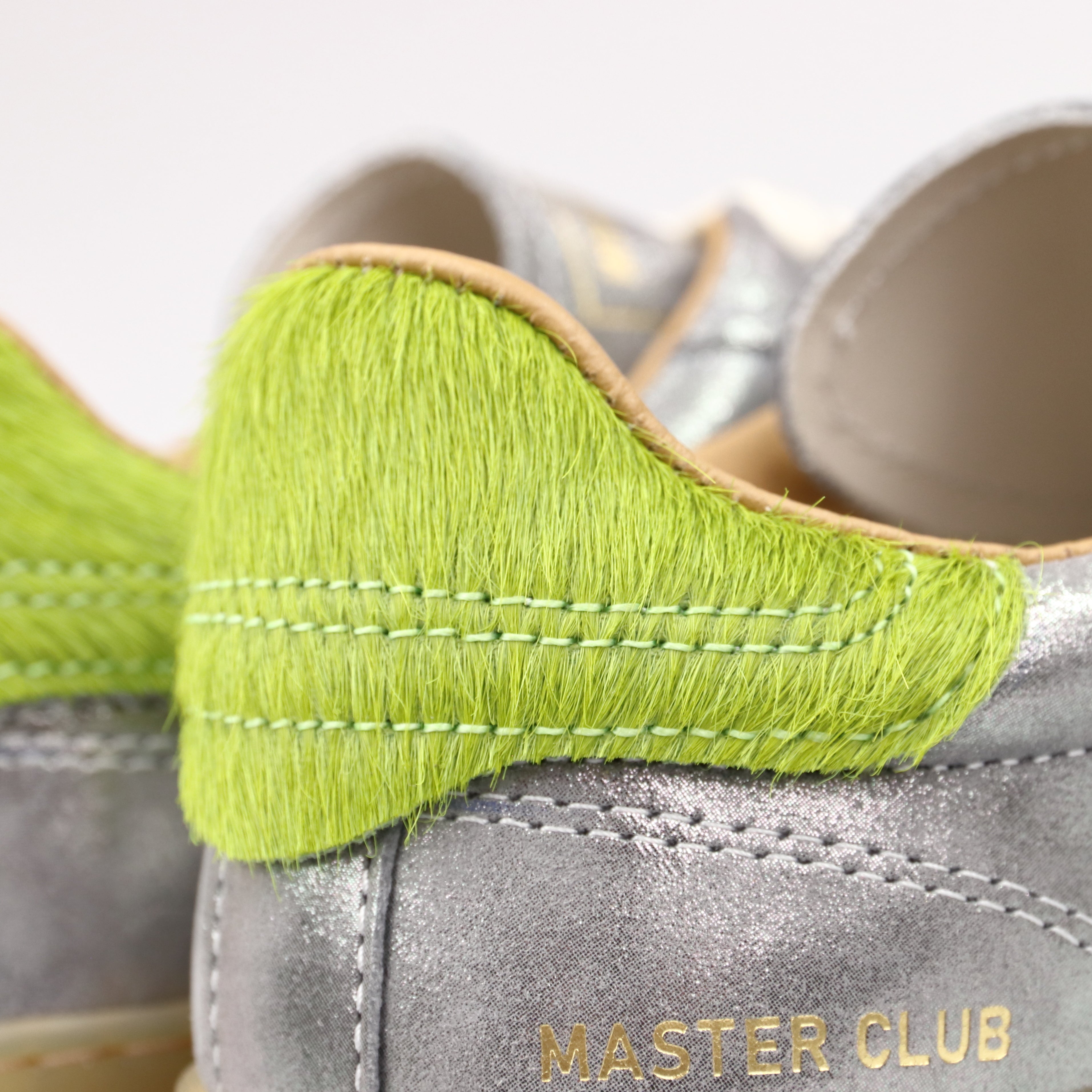 Club Sneaker in Silver Laminated Leather and Ponyskin